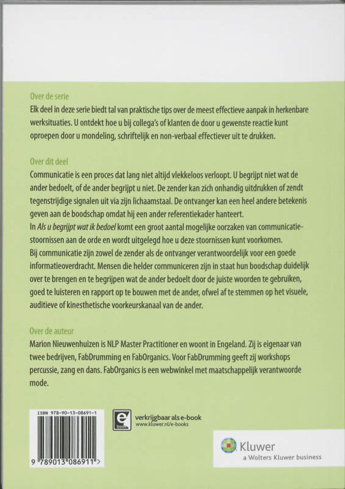 In Als u begrijpt wat ik bedoel komt een groot aantal mogelijke oorzaken van communicatiestoornissen aan de orde en wordt uitgelegd hoe u deze stoornissen kunt voorkomen.