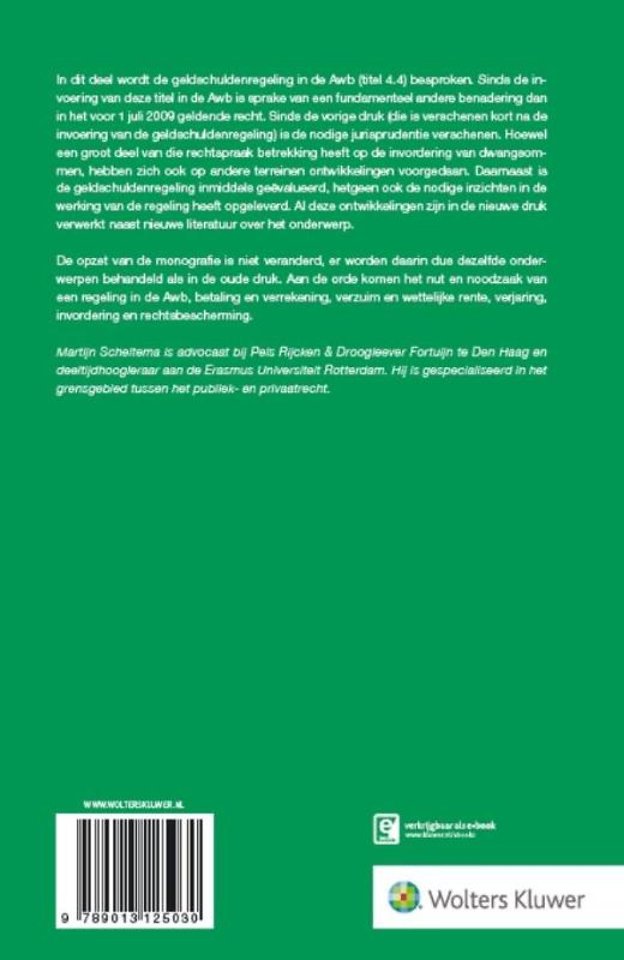 'Bestuursrechtelijke geldschulden' bespreekt de geldschuldenregeling in de Awb (titel 4.4). Sinds de invoering van deze titel in de Awb is sprake van een fundamenteel andere benadering dan in het voor 1 juli 2009 geldende recht. Sinds de vorige druk (die is verschenen kort na de invoering van de geldschuldenregeling) is de nodige jurisprudentie verschenen. Hoewel een groot deel van die rechtspraak betrekking heeft op de invordering van dwangsommen, hebben zich ook op andere terreinen ontwikkelingen voorgedaan. Daarnaast is de geldschuldenregeling inmiddels geëvalueerd, wat ook de nodige inzichten in de werking van de regeling heeft opgeleverd. Al deze ontwikkelingen zijn in de nieuwe druk verwerkt naast nieuwe literatuur over het onderwerp.