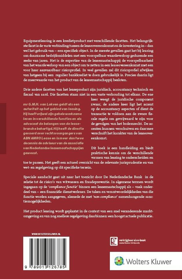 Leasing is een handleiding en biedt praktische kennis om de verschillende vormen van leasing te onderscheiden en toe te passen. Het geeft een actueel overzicht van de relevante jurisprudentie en van wet- en regelgeving op dit specifieke terrein. Speciale aandacht gaat uit naar het toezicht door De Nederlandsche Bank in relatie tot de risico’s van witwassen en fraudepreventie.