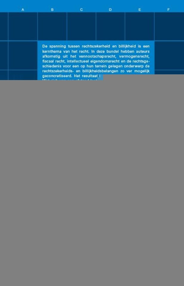 De spanning tussen rechtszekerheid en billijkheid is een kernthema van het recht. In 'Rechtszekerheid in het ondernemings- en vermogensrecht' hebben auteurs afkomstig uit het vennootschapsrecht, vermogensrecht, fiscaal recht, intellectueel eigendomsrecht en de rechtsgeschiedenis voor een op hun terrein gelegen onderwerp de rechtszekerheids- en billijkheidsbelangen zo ver mogelijk geconcretiseerd.