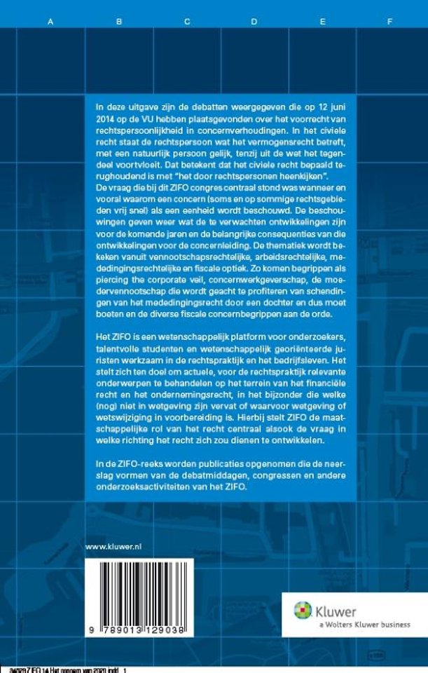 In 'Het concern van 2020' zijn de debatten weergegeven die op 12 juni 2014 op de VU hebben plaatsgevonden over het voorrecht van rechtspersoonlijkheid in concernverhoudingen. In het civiele recht staat de rechtspersoon wat het vermogensrecht betreft met een natuurlijk persoon gelijk, tenzij uit de wet het tegendeel voortvloeit. Dat betekent dat het civiele recht bepaald terughoudend is met 'het door rechtspersonen heenkijken'.