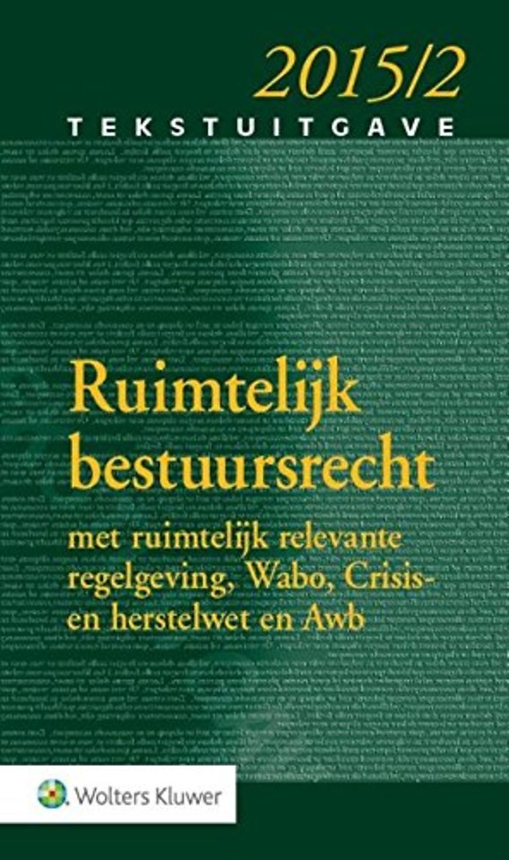 'Tekstuitgave Ruimtelijk bestuursrecht' is een selectie van de belangrijkste regelingen betreffende het ruimtelijk bestuursrecht, het omgevingsrecht en relevante milieuwetgeving die in de praktijk regelmatig worden geraadpleegd. Vanwege de betekenis voor het omgevingsprocesrecht vindt u hierin ook de Crisis- en herstelwet en de Algemene wet bestuursrecht.