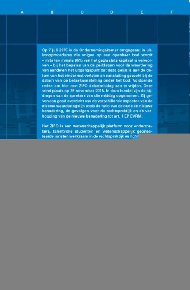 Hieraan is een ZIFO debatmiddag gewijd. Deze vond plaats op 26 november 2015. In deze bundel zijn de bijdragen van de sprekers van die middag opgenomen. Zij geven een goed overzicht van de verschillende aspecten van de nieuwe waarderingslijn zoals de ratio van de oude en nieuwe benadering, de gevolgen voor de rechtspraktijk en de verhouding van de nieuwe benadering tot art. 1 EP EVRM.