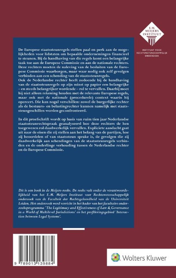 Bent u rechter, wetenschapper of houdt u zich op een andere manier beroepsmatig bezig met het staatssteunrecht? In deze uitgave wordt tien jaar Nederlandse staatssteunrechtspraak geanalyseerd. U vindt er alles in wat u moet weten over de handhaving van het staatssteunrecht door de Nederlandse rechter.