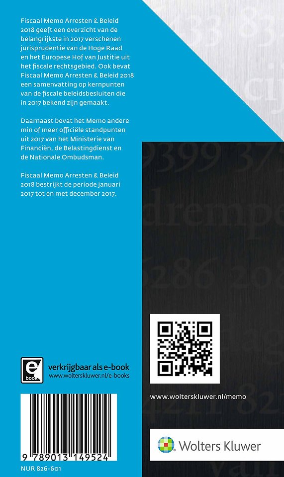 Het fiscale rechtsgebied kent een beweeglijke dynamiek als het gaat om rechtspraak en beleidsbesluiten. Fiscaal Memo Arresten & Beleid 2018 schetst op overzichtelijke wijze de actuele stand van zaken. Zo maakt u het uzelf gemakkelijk om bij te blijven.