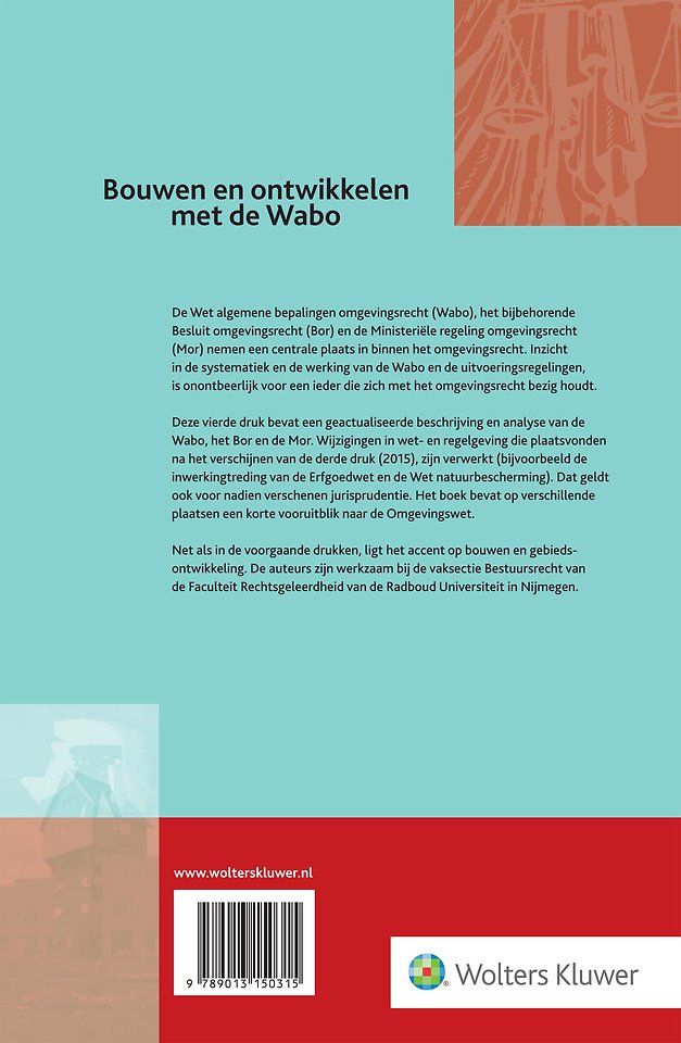 In deze vierde editie van Bouwen en ontwikkelen met de Wabo zijn alle wijzigingen in de wet- en regelgeving die plaatsvonden na de derde druk (2015) verwerkt - denk bijvoorbeeld aan de inwerkingtreding van de Erfgoedwet en de Wet natuurbescherming. Ook alle recentelijk verschenen jurisprudentie is in deze nieuwe editie verwerkt. Bovendien blikt de titel op meerdere plaatsen vooruit naar de Omgevingswet.