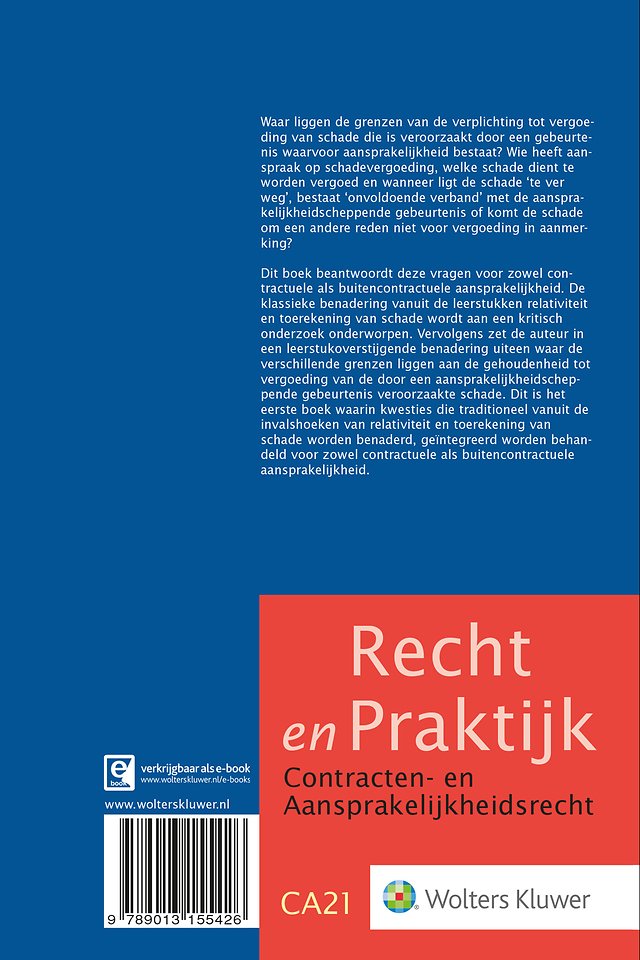 Advocaten, rechters en advocaten-generaal krijgen met deze titel een scherper beeld van de grenzen van aansprakelijkheid. Voor het eerst worden de vereisten van relativiteit, causaliteit en toerekening van schade voor zowel buitencontractuele aansprakelijkheid als contractuele aansprakelijkheid behandelt in een uitgave.