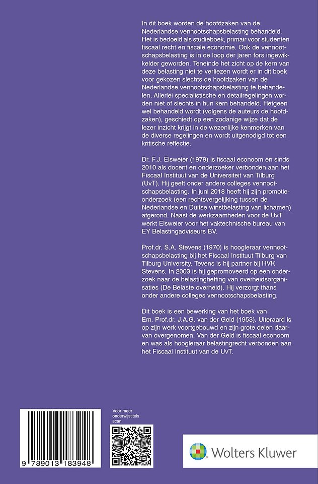 - Overzichtelijke en systematische behandeling van de hoofdzaken van de Nederlandse vennootschapsbelasting.