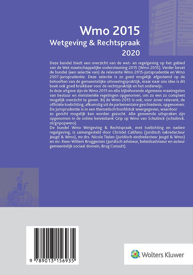 Deze 2020-editie bevat nieuwe jurisprudentie, thematisch geordend voor uw gebruiksgemak. Wanneer u werkzaam bent in de gemeentelijke uitvoeringspraktijk, dan kunt u niet om de Wet maatschappelijke ondersteuning (Wmo 2015) heen. Wmo 2015 Wetgeving & Rechtspraak 2020 biedt een overzicht van de wet- en regelgeving op het gebied van deze wet en aanverwante regelingen. Ook treft u een selectie van de relevante Wmo 2015-jurisprudentie en Wmo 2007-jurisprudentie. Deze selectie is zo goed mogelijk afgestemd op de be¬hoeften van de gemeentelijke uitvoeringspraktijk. Hiernaast leent de uitgave zich goed als naslagwerk voor de rechtspraktijk en het onderwijs.