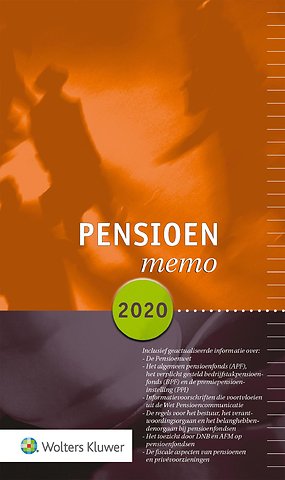 Pensioenmemo 2020 biedt u een totaalbeeld van de actuele stand van zaken rondom pensioen, lijfrente en levensverzekeringen. Het geeft u een handzaam overzicht van de wettelijke fiscale bepalingen op het gebied van pensioen, lijfrenten, kapitaalverzekeringen, de gouden handdruk en de levensloopregeling.