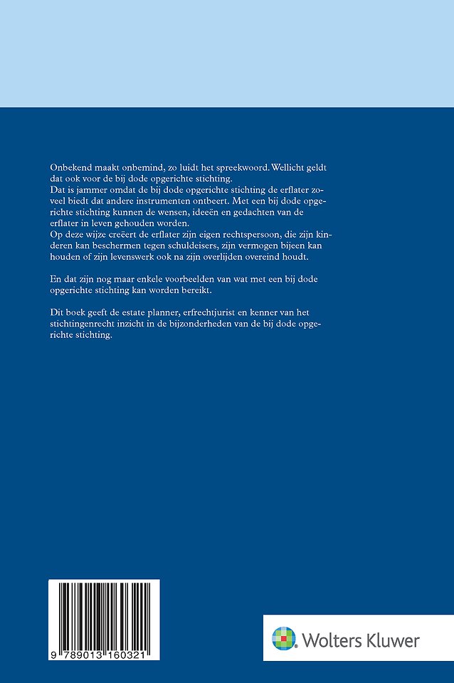 Waar uitgaven over dit onderwerp veelal de focus leggen op een deelgebied van de bij dode opgerichte stichting, komen in deze titel diverse onderwerpen aan bod die niet eerder in hun onderlinge samenhang zijn geanalyseerd. Zo bespreekt de auteur het verbod tot het opleggen van de verplichting te bewaren uit art. 4:42 lid 2 BW en de aard van het uitkeringsverbod uit art. 2:285 lid 3 BW. Kortom: houdt u zich bezig met estate planning? Dan biedt deze titel een waardevolle bron van informatie over de juridische wegen om erflaters in hun wensen te ondersteunen. Ook Erfrecht-juristen en kenners van het stichtingenrecht hebben om die reden baat bij deze titel.