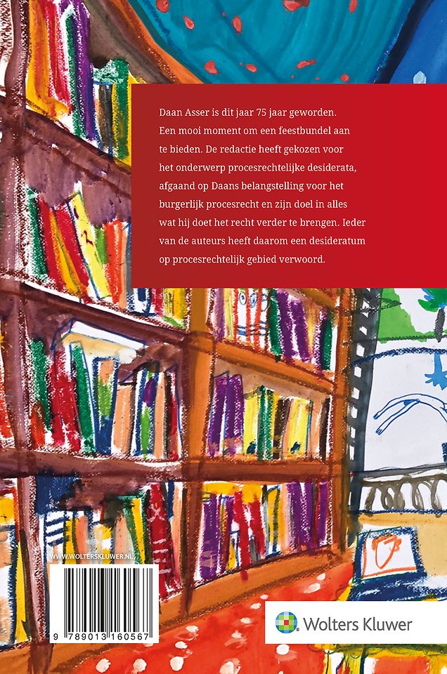 Dit jaar is Daan Asser 75 jaar geworden. Ter ere van zijn verjaardag verschijnt de feestbundel Voor Daan Asser. De redactie heeft gekozen voor het onderwerp procesrechtelijke desiderata. Een passend thema voor iemand als Daan Asser, een jurist die gekenmerkt wordt door een grote belangstelling voor het burgerlijk procesrecht en zijn doel in alles wat hij doet het recht verder te brengen. Ieder van de auteurs heeft daarom een desideratum op procesrechtelijk gebied verwoord. Welke koers zouden zij dit rechtsgebied het liefst zien inslaan?