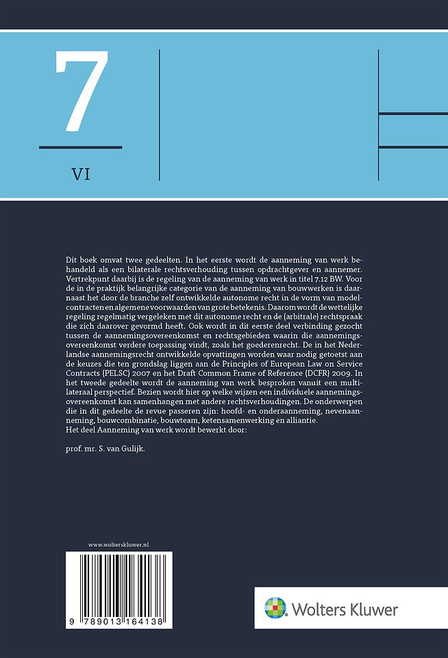 Asser-deel 7-VI Aanneming van werk biedt een actueel overzicht van de wetenschappelijke en maatschappelijke ontwikkelingen en rechtspraak met betrekking tot de aanneming van werk, evenals andere in de praktijk voorkomende samenwerkingsvormen tussen aannemer en opdrachtgever. De auteurs werpen een brede blik op de aanneming van werk. Enerzijds krijgt de lezer inzicht in de aannemingsovereenkomst in bilateraal verband tussen aannemer en opdrachtgever, die is geregeld in de wet. Vertrekpunt daarbij is de regeling van de aanneming van werk in titel 7.12 BW. Anderzijds wordt stilgestaan bij de vele multilaterale samenwerkingsverbanden die bestaan voor de aanneming van werk: hoofd- en onderaanneming, nevenaanneming, bouwcombinatie, bouwteam, ketensamenwerking en alliantie. Daarnaast wordt ingegaan op meer algemene vermogensrechtelijke en goederenrechtelijke onderwerpen die relevant zijn voor de bouwrechtjurist.