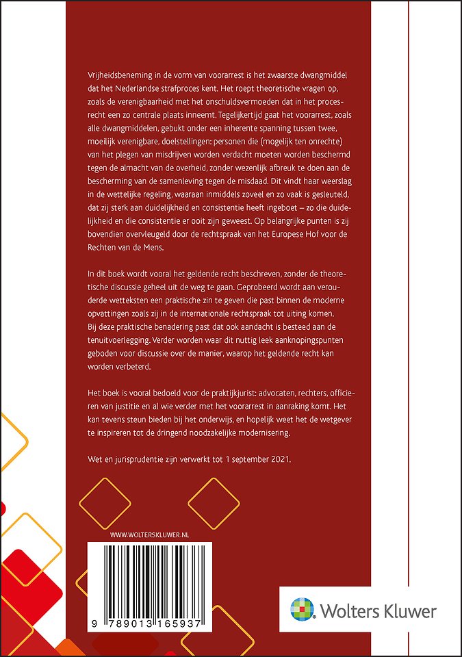 Vrijheidsbeneming in de vorm van voorarrest is het zwaarste dwangmiddel binnen het Nederlandse strafproces. Het voorarrest roept diverse theoretische vragen op. In hoeverre is het middel verenigbaar met het onschuldsvermoeden, dat in het procesrecht een zo centrale plaats inneemt? Er bevindt zich een spanningsveld tussen de doelstellingen om personen te beschermen tegen de almacht van de overheid enerzijds, en de bescherming van de samenleving tegen misdaad anderzijds. Dit spanningsveld vindt haar weerslag in de wettelijke regeling. Hieraan is echter zo vaak is gesleuteld, dat deze wetgeving sterk aan duidelijkheid en consistentie heeft ingeboet. Op belangrijke punten is zij bovendien overvleugeld door de rechtspraak van het Europese Hof voor de Rechten van de Mens.
