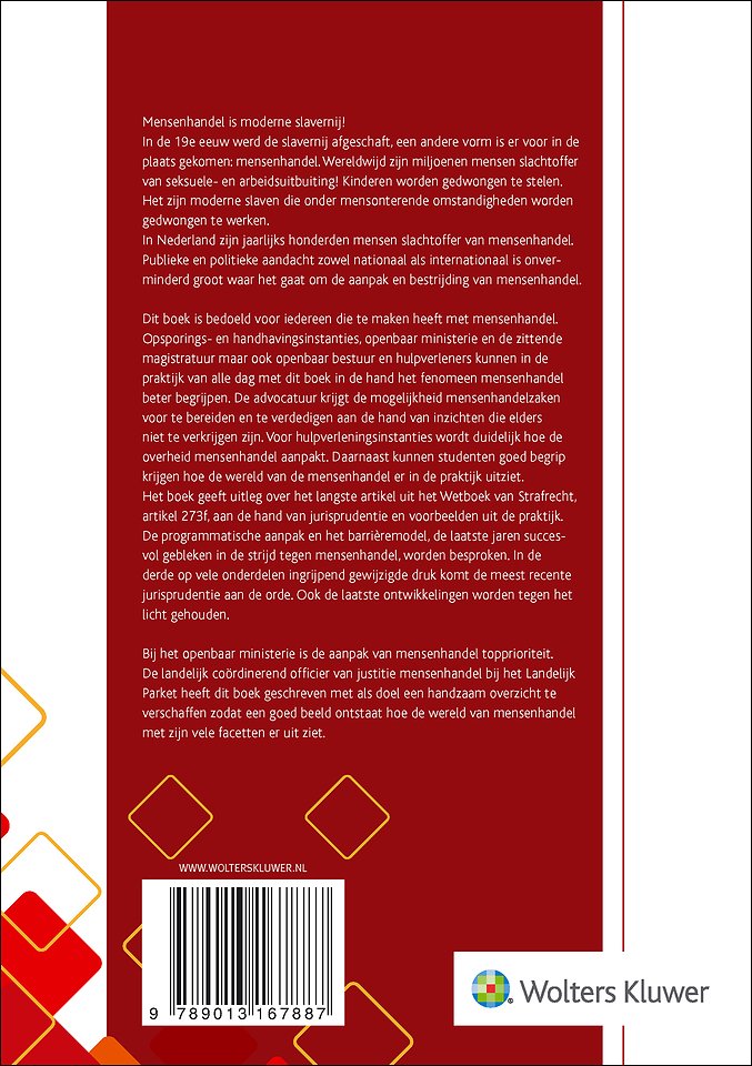 Geeft praktische handvatten voor iedereen die zich bezighoudt met het fenomeen mensenhandel. Deze 3e druk bevat de meest recente jurisprudentie en bespreekt alle informatie die voor de opsporing, berechting en hulpverlening van belang is. Door de praktische insteek en vele praktijkvoorbeelden krijgt de lezer gemakkelijk inzicht in het onderwerp.