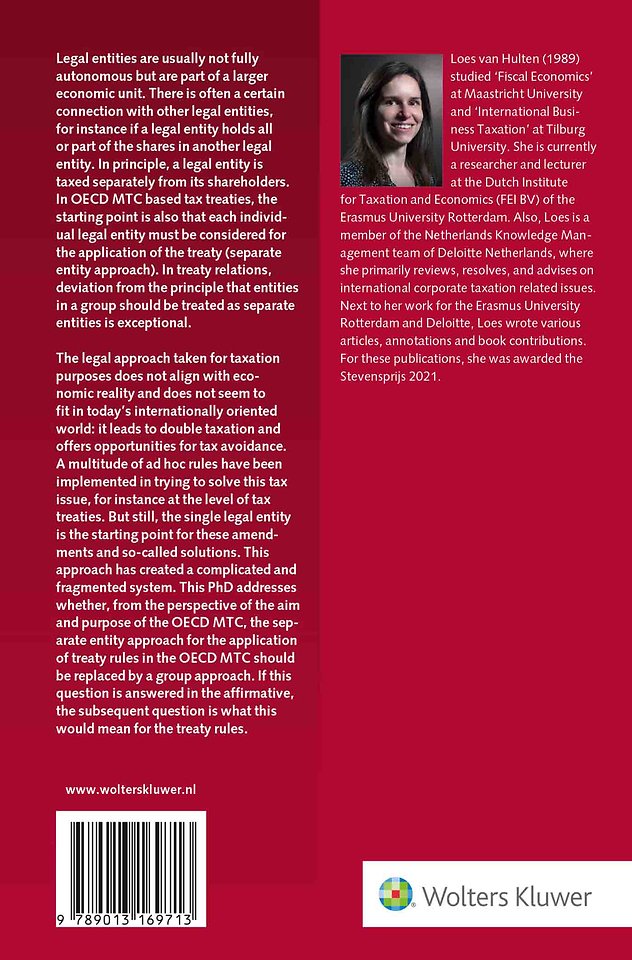 This PhD research discusses the current and desired treatment of companies in a group in the context of tax treaties. The author examines whether, from the perspective of the aim and purpose of the OECD MTC, the separate entity approach for the application of treaty rules in the OECD MTC should be replaced by a group approach. Subsequently, the question is explored what this adjustment would mean for the treaty rules.