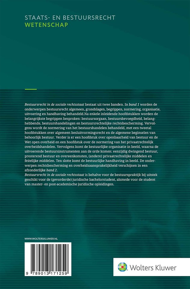 Bestuursrecht in de sociale rechtsstaat is behalve voor de bestuurspraktijk bij uitstek geschikt voor de (gevorderde) juridische bachelorstudent, alsmede voor de student van master- en post-academische juridische opleidingen.