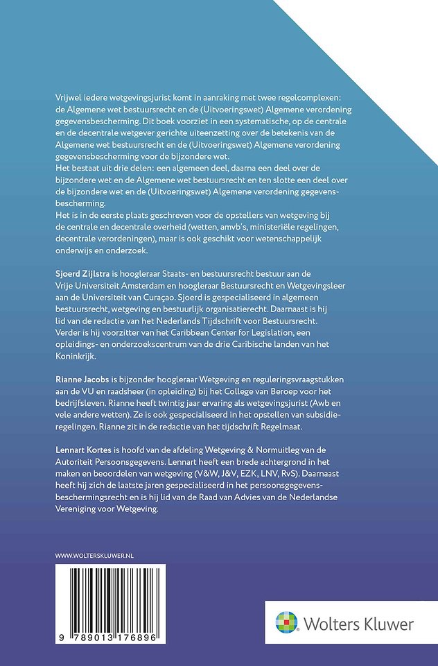 De Algemene wet bestuursrecht en de Algemene verordening gegevensbescherming spelen vrijwel altijd een rol bij het opstellen van bijzondere wetgeving. Bijzondere en algemene wetgeving biedt een systematische bespreking van de manier waarop wetgevingsjuristen moeten omgaan met de Awb en de (U)AVG.