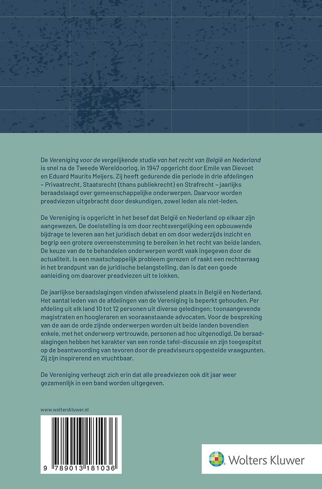rechtsvergelijking strafrecht publiekrecht privaatrecht belgië nederland wetgeving rechtswetenschap juridisch preadviezen rechtsstelsel juridische analyse benelux rechtsgebieden comparatief recht juridische thema's beraadslagingen wetteksten rechtsdoctrine bestuursrecht burgerlijk recht rechtsontwikkeling juridische praktijk rechterlijke macht grensoverschrijdend recht