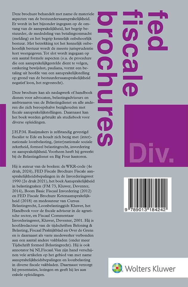 Bestuurdersaansprakelijkheid vormt voor advocaten, belastingadviseurs en ambtenaren van de Belastingdienst een ideaal naslagwerk. Studenten kunnen het gebruiken als studiemateriaal voor diverse opleidingen.
