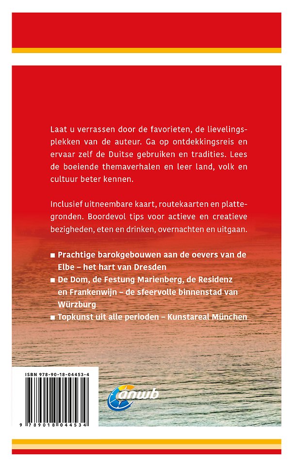 ANWB Ontdek reisgids Duitsland zuidoost Verken het zuidoosten van Duitsland op een andere manier met de uitgebreide ANWB Ontdek reisgids Duitsland zuidoost! Natuurlijk mag je de vele bezienswaardigheden in steden zoals München en barokstad Dresden niet missen. Een bezoek aan de middeleeuwse burcht Wartburg bij Eisenach en het Lindenau-Museum in Altenburg is een aanrader. De Ontdek reisgids Duitsland zuidoost biedt naast praktische tips over campings, vakantiehuizen, hotels en vervoer ook originele ontdekkingstochten door de streek. De auteur laat juist díe plekjes zien waar de andere toeristen aan voorbij lopen. Achter in de handzame gids zit een uitneembare kaart. Kortom: deze reisgids is een onmisbare reisgezel tijdens je reis door het Zuidoost-Duitsland.