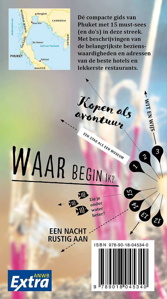 ANWB Extra reisgids Phuket – Thailand Beleef Phuket met de compleet vernieuwde reisgids ANWB Extra Phuket! Het heerlijke klimaat, de indrukwekkende cultuur, de vrolijke chaos in de stad. Maar ook de rust aan de stranden en natuurlijk de vriendelijke, goedlachse inwoners van het land. Van backpacker tot luxedier, iedereen vindt in Thailand zijn droombestemming. De ANWB Extra reisgids Phuket biedt naast veel praktische tips over vakantiehuizen, hotels en vervoer ook 15 inspirerende bezienswaardigheden die je niet mag missen. Ga kajakken door de Phang Nga Bay, slenter over de Naka Weekend Market of wandel door de wildernis van nationaal park Khao Phra Thaeo. Deze kleine reisgids past gemakkelijk in de tas en heeft een handige uitneembare kaart met daarop de beste tips voor overnachten, winkelen, eten en drinken en uitgaan. ANWB Extra is de succesvolste reisgidsenserie van Nederland! Met meer dan 120 gidsen biedt deze serie een reisgids voor nagenoeg iedere denkbare bestemming.