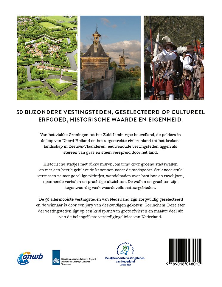 De 50 allermooiste vestingsteden van Nederland geselecteerd door de leden van de ANWB en opgenomen in één boek. Ontdek Nederland, van het vlakke Groningen tot het Zuid-Limburgse heuvelland want eeuwenoude vestingsteden liggen als sterren van tras en steen verspreid door het land. Dikke muren, omarmd door groene stadswallen en met een beetje geluk oude kanonnen naast de stadspoort. In De allermooiste vestingsteden van Nederland lees je over de geschiedenis van deze steden, over de Tachtigjarige Oorlog en de Hollandse Waterlinie. Je vindt gezellige pleintjes, terrasjes, wandelpaden over bastions en ravelijnen, interessante musea en monumenten, en veel spannende verhalen.