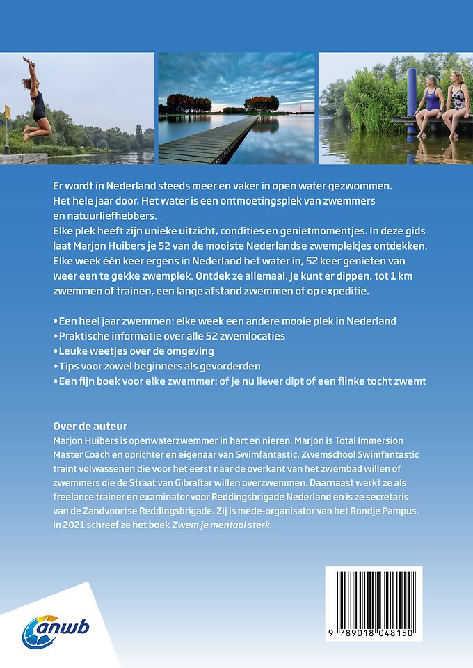 Elke plek heeft zijn unieke uitzicht, condities en genietmomentjes. In deze gids laat Marjon Huibers je 52 van de mooiste Nederlandse zwemplekjes ontdekken. Elke week één keer ergens in Nederland het water in, 52 keer genieten van weer een te gekke zwemplek. Ontdek ze allemaal. Je kunt er dippen, tot 1 km zwemmen of trainen, een lange afstand zwemmen of op expeditie.