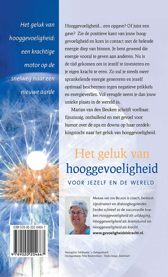 tijd gekomen om in jezelf te investeren en je eigen kracht te eren. Zo zul je steeds meer sprankelende energie genereren en jezelf optimaal beschermen tegen negatieve prikkels en energieverlies. Vol vreugde neem je dan jouw unieke plaats in de wereld in. Marian van den Beuken schrijft voelbaar, fijnzinnig, onthullend en met gevoel voor humor over de ups en downs op haar ontdekkingstocht naar het geluk van hooggevoeligheid.