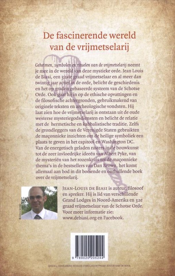 Geheimen, symbolen en rituelen van de vrijmetselarij neemt je mee in de wereld van deze mystieke orde. Jean-Louis de Biasi, een 32e graad vrijmetselaar en al meer dan twintig jaar actief in de orde, belicht de geschiedenis en het op graden gebaseerde systeem van de Schotse Orde. Ook gaat hij in op de ethische opvattingen en de filosofische achtergronden, gebruikmakend van originele teksten en archeologische vondsten.