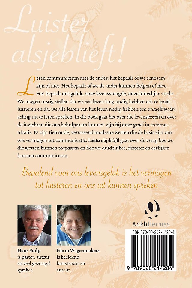 Leren communiceren met de ander: het bepaalt of we eenzaam zijn of niet. Het bepaalt of we de ander kunnen helpen of niet. Het bepaalt ons geluk, onze levensvreugde, onze innerlijke vrede. We mogen rustig stellen dat we een leven lang nodig hebben om te leren luisteren en dat we alle lessen van het leven nodig hebben om onszelf waarachtig uit te leren spreken. In dit boek gaat het over die levenslessen en over de inzichten die ons behulpzaam kunnen zijn bij onze groei in communicatie. Er zijn tien oude, verrassend moderne wetten die de basis zijn van ons vermogen tot communicatie. Luister alsjeblieft! gaat over de vraag hoe we die wetten kunnen toepassen en hoe we duidelijker, directer en eerlijker kunnen communiceren.