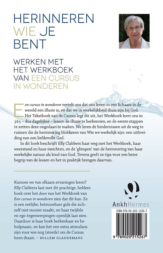 In Herinneren Wie je bent beschrijft Elly Clabbers haar weg met het Werkboek van Een cursus in wonderen, haar weerstand en haar inzichten, en de ‘glimpen’ van de herinnering aan haar werkelijke natuur als kind van God. Volgens Een cursus in wonderen is ons leven in deze wereld een illusie, en zijn we in werkelijkheid thuis bij God. Het Tekstboek van de Cursus legt dit uit, het Werkboek leert ons in 365 lessen de illusie te herkennen. Zowel Tekstboek als Werkboek zijn niet altijd even gemakkelijk te lezen en te hanteren voor iedereen. Elly Clabbers biedt met dit boek een grote steun. Naast haar persoonlijke verhaal geeft ze tips voor een beter begrip van de lessen en het in praktijk brengen daarvan.