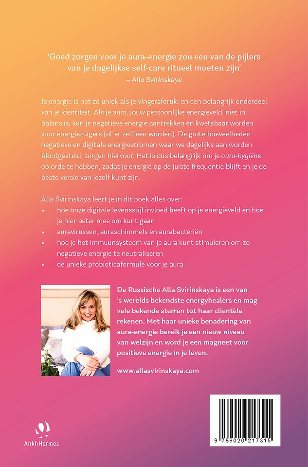 In Aura-energie laat Alla Svirinskaya je zien hoe je je aura laag voor laag kunt reinigen. Je energie is net zo uniek als je vingerafdruk, en een belangrijk onderdeel van je identiteit. Als je aura, jouw persoonlijke energieveld, niet in balans is, kun je toxische energie aantrekken en kwetsbaar worden voor energiezuigers (of er zelf een worden).
