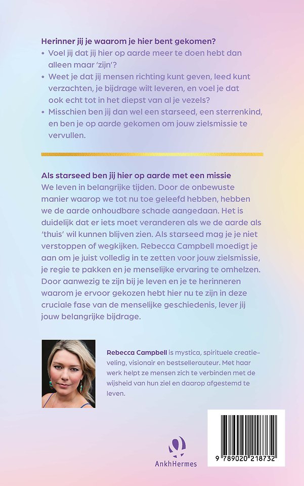 In 'Starseed' helpt Rebecca Campbell de kosmische oorsprong van je ziel bloot te leggen. We zijn allemaal gemaakt van sterrenstof en velen van ons zijn als sterrenkinderen naar de aarde gekomen om hun zielsmissie te vervullen. Met de inzichten en ervaringen uit dit boek kom je erachter of jij ook een sterrenkind bent.