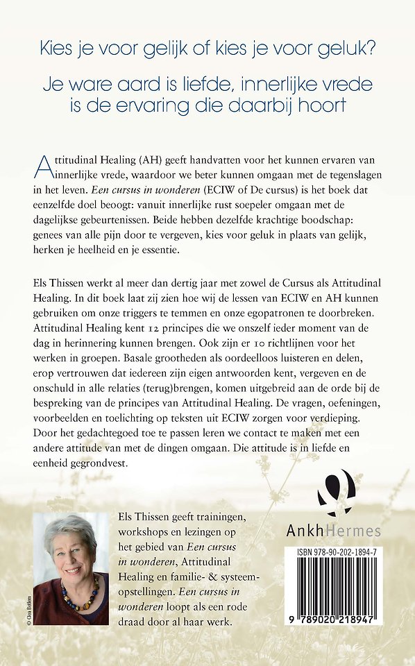 Attitudinal Healing (AH) en Een cursus in wonderen (ECIW) hebben dezelfde krachtige boodschap: genees van alle pijn door te vergeven, kies voor geluk in plaats van gelijk, herken je heelheid en essentie.