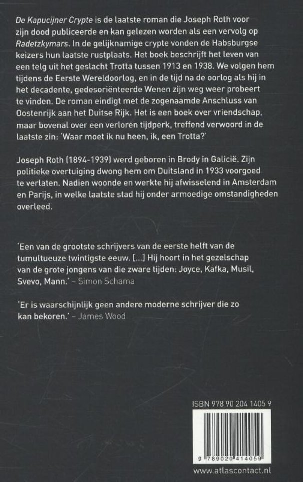 De Kapucijner Crypte is de laatste roman die Joseph Roth voor zijn dood publiceerde en kan gelezen worden als een vervolg op Radetzkymars. In de gelijknamige crypte vonden de Habsburgse keizers hun laatste rustplaats. Het boek beschrijft het leven van een telg uit het geslacht Trotta tussen 1913 en 1938. We volgen hem tijdens de Eerste Wereldoorlog, en in de tijd na de oorlog als hij in het decadente, gedesoriënteerde Wenen weer zijn weg probeert te vinden. De roman eindigt met de zogenaamde Anschluss van Oostenrijk aan het Duitse Rijk. Het is een boek over vriendschap, maar bovenal over een verloren tijdperk, treffend verwoord in de laatste zin: 'Waar moet ik nu heen, ik, een Trotta?'