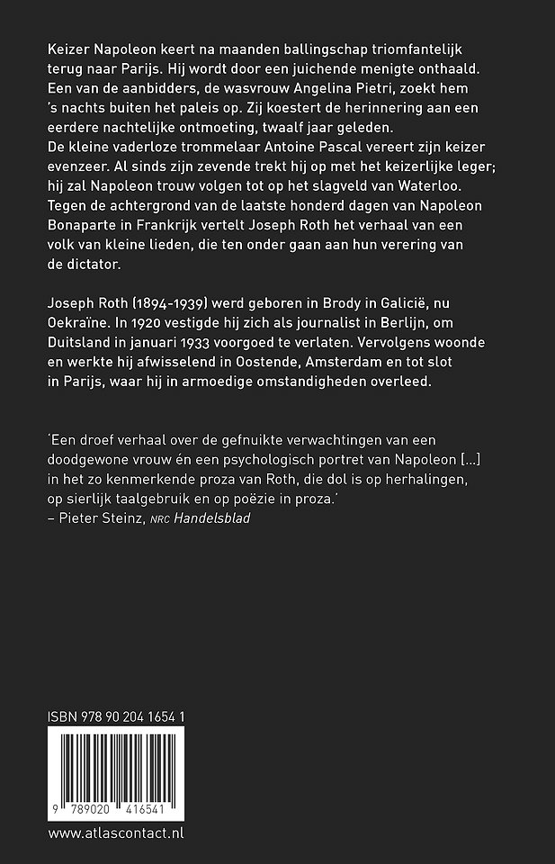 Tegen de achtergrond van de laatste honderd dagen van Napoleon Bonaparte in Frankrijk vertelt Joseph Roth het verhaal van een volk van kleine lieden, die ten onder gaan aan hun verering van de dictator.