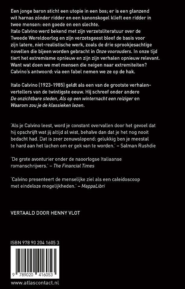 Een jonge baron sticht een utopie in een bos; er is een glanzend wit harnas zónder ridder en een kanonskogel klieft een ridder in twee mensen: een goede en een slechte.