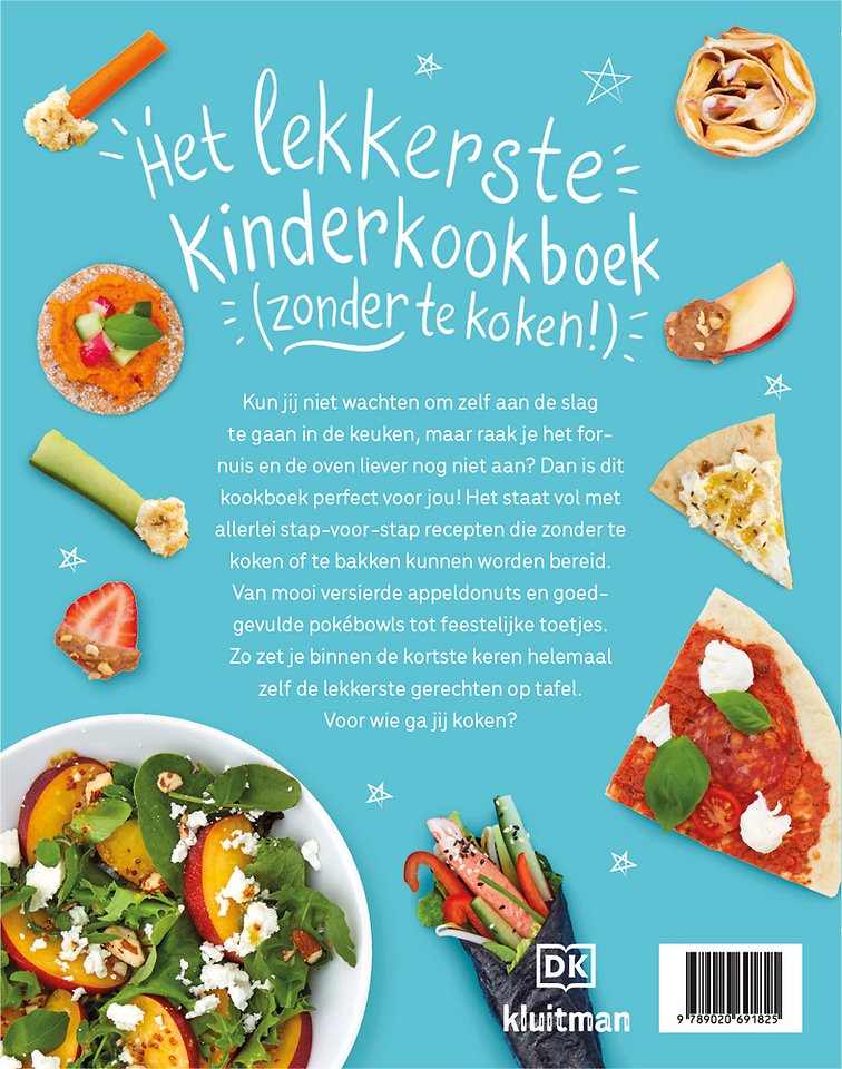 Kun jij niet wachten om zelf aan de slag te gaan in de keuken, maar raak je het fornuis en de oven liever nog niet aan? Dan is dit kookboek perfect voor jou! Het staat vol met allerlei stap‑voor-stap recepten die zonder te koken of te bakken kunnen worden bereid. Van mooi versierde appeldonuts en goedgevulde pokébowls tot feestelijke toetjes. Zo zet je binnen de kortste keren helemaal zelf de lekkerste gerechten op tafel. Voor wie ga jij koken?