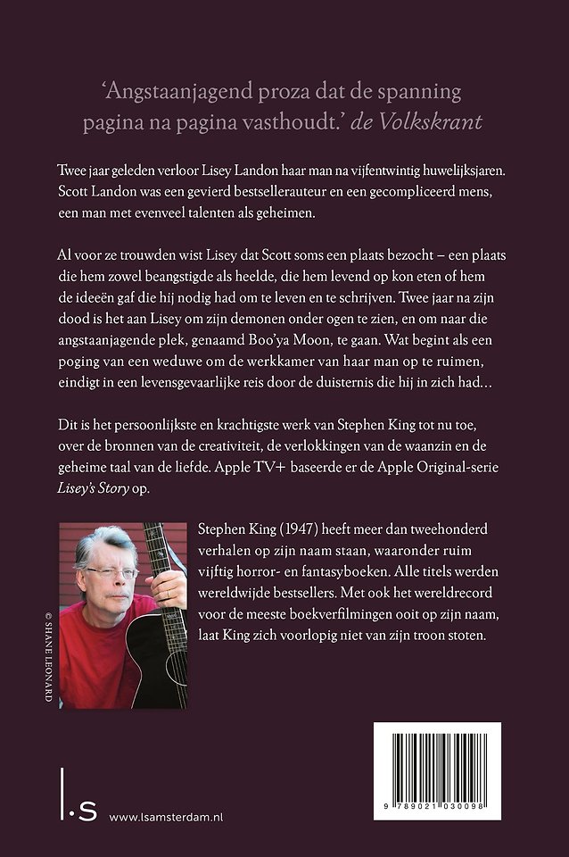 Twee jaar na zijn dood is het aan Lisey om zijn demonen onder ogen te zien en om naar die angstaanjagende plek, genaamd Boo’ya Moon, te gaan. Wat begint als een poging van een weduwe om de werkkamer van haar man op te ruimen, eindigt in een levensgevaarlijke reis door de duisternis die Scott in zich had…