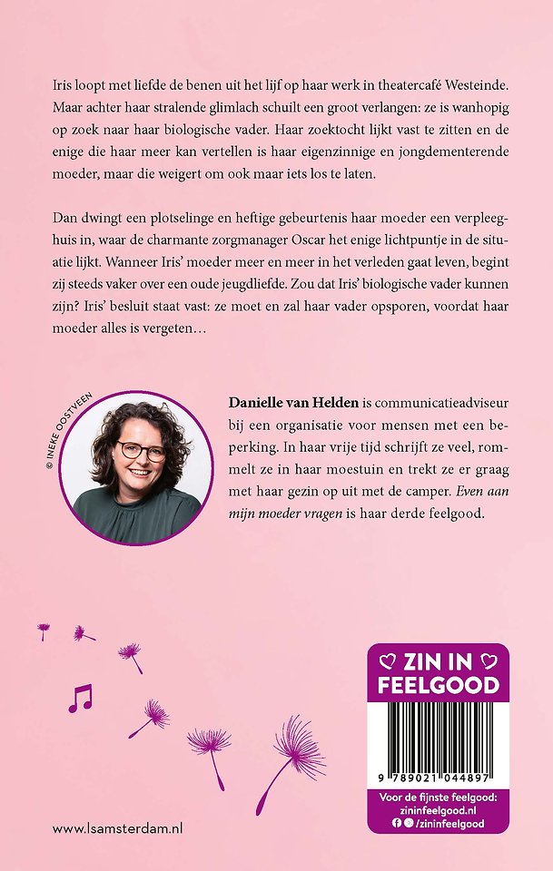 In Even aan mijn moeder vragen loopt Iris met liefde de benen uit het lijf op haar werk in theatercafé Westeinde. Maar achter haar stralende glimlach schuilt een groot verlangen: ze is wanhopig op zoek naar haar biologische vader. Haar zoektocht lijkt vast te zitten en de enige die haar meer kan vertellen is haar eigenzinnige en jongdementerende moeder, maar die weigert om ook maar iets los te laten.