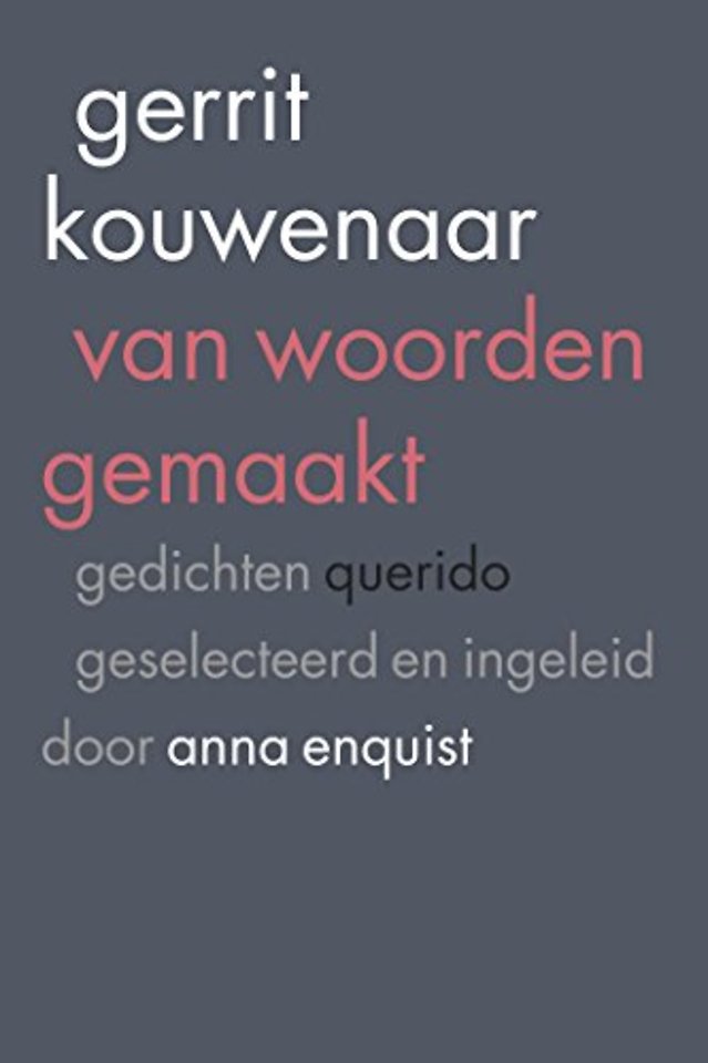 Om de aandacht voor zijn poëzie levend te houden selecteerde Anna Enquist de mooiste gedichten van Gerrit Kouwenaar. ‘Geen literair-kritisch verantwoorde bloemlezing waarin alle aspecten van het werk aan de orde komen maar een persoonlijke selectie, gedreven door de vraag hoe Gerrit eigenlijk was en wat hij met zijn werk wilde,’ schrijft ze in haar inleiding. Het resultaat, van woorden gemaakt, biedt een blik op zijn oeuvre – door haar ogen.