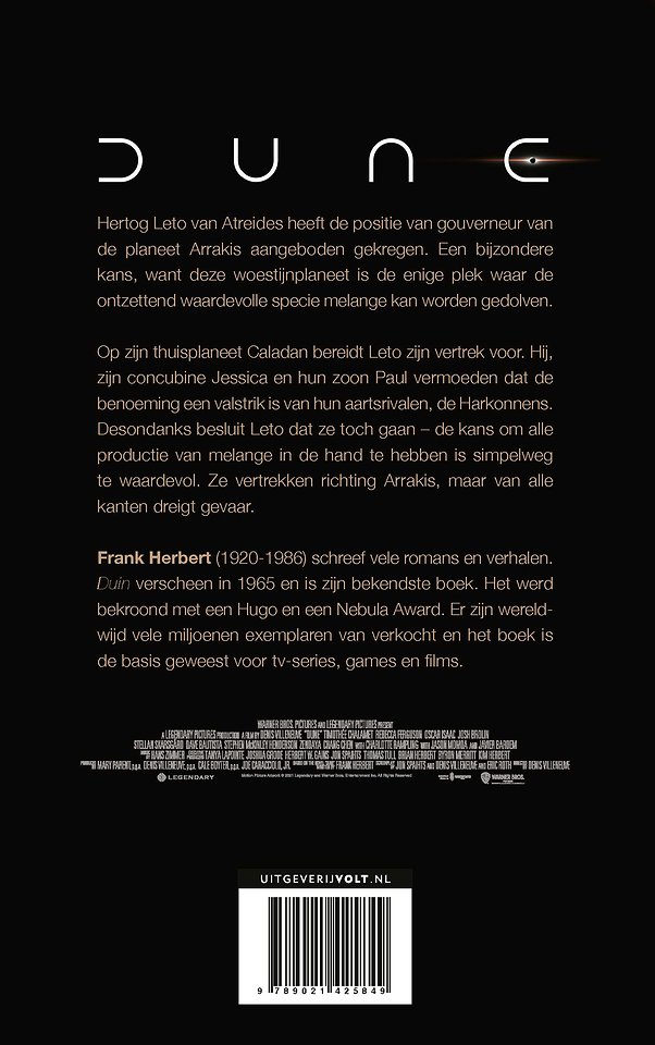 Dune verscheen in 1965 en is de grootste sciencefictionklassieker aller tijden. Er zijn vele miljoenen exemplaren van het boek verkocht en het boek is de basis geweest voor tv-series, games en films. In september 2021 verschijnt een nieuwe verfilming van Denis Villeneuve (Arrival, Blade Runner 2049).