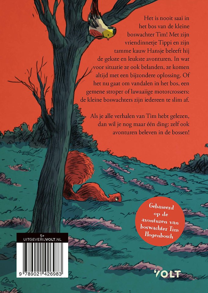 Er gebeurt weer van alles in het bos van de kleine boswachter Tim. Met zijn vriendinnetje Tippi en zijn tamme kauw Hansje beleeft hij de gekste en leukste avonturen. In wat voor situatie ze ook belanden, ze komen altijd met een bijzondere oplossing. Of het nu gaat om vandalen in het bos, een gemene stroper of lawaaiige motorcrossers: de kleine boswachters zijn iedereen te slim af. Natuurlijk gebeurt er ook genoeg vrolijks. Want als je weet wat je er allemaal kunt doen, dan zijn de bossen minstens zo spannend en meeslepend als een groot pretpark. En als je alle verhalen van Tim hebt gelezen, dan wil je nog maar één ding: zelf ook avonturen beleven in de bossen!