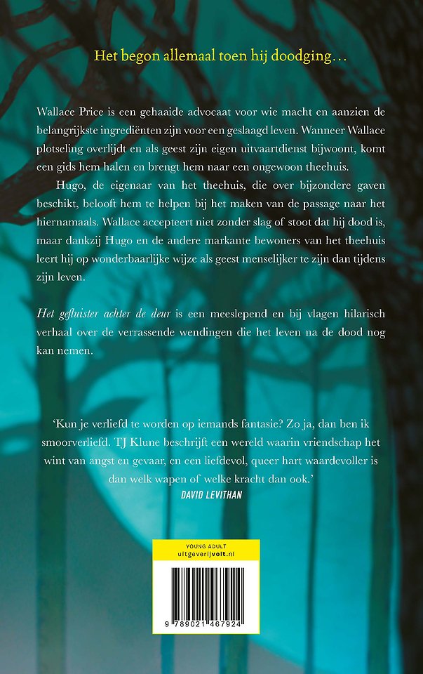 Het gefluister achter de deur is een meeslepend en bij vlagen hilarisch verhaal over de verrassende wendingen die het leven na de dood nog kan nemen.