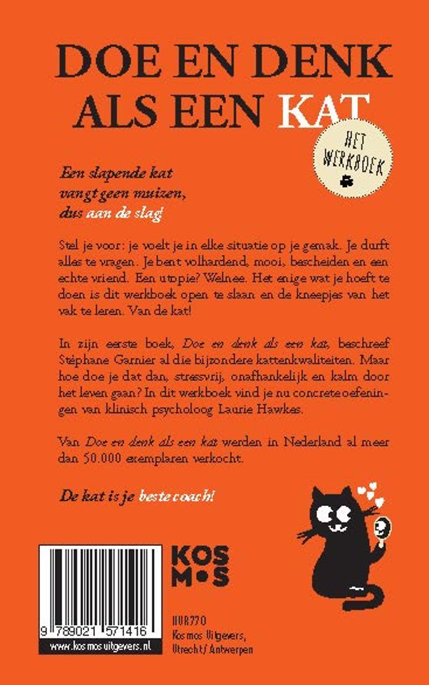 Het werkboek bij de bestseller Doe en denk als een kat van Stéphane Garnier biedt concrete oefeningen ons die bewonderenswaardige kattenkwaliteiten écht eigen te kunnen maken. Klinisch psycholoog Laurie Hawkes borduurt hiermee voort op het succes van Stéphane Garnier, die ons op een aanstekelijke manier laat zien wat wij van katten kunnen leren. Een uniek werkboek om nog meer te doen en denken als een kat.