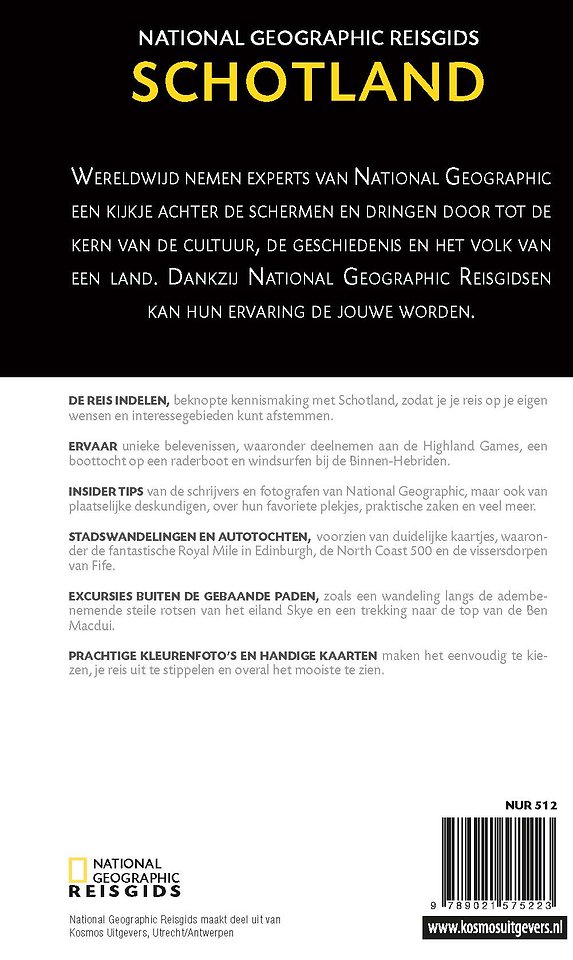 National Geographic Reisgids Schotland is een exclusieve gids met sublieme fotografie die je meeneemt naar de bekende en minder bekende bezienswaardigheden. De experts van National Geographic nemen een kijkje achter de schermen en dringen door tot de kern van de cultuur, de geschiedenis en bijzondere plekjes van de streek.