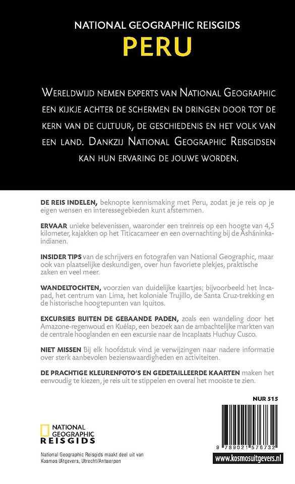 National Geographic Reisgids Peru is een exclusieve gids met sublieme fotografie die u meeneemt naar de bekende en minder bekende bezienswaardigheden. De experts van National Geographic nemen een kijkje achter de schermen en dringen door tot de kern van de cultuur, de geschiedenis en het volk van het land.