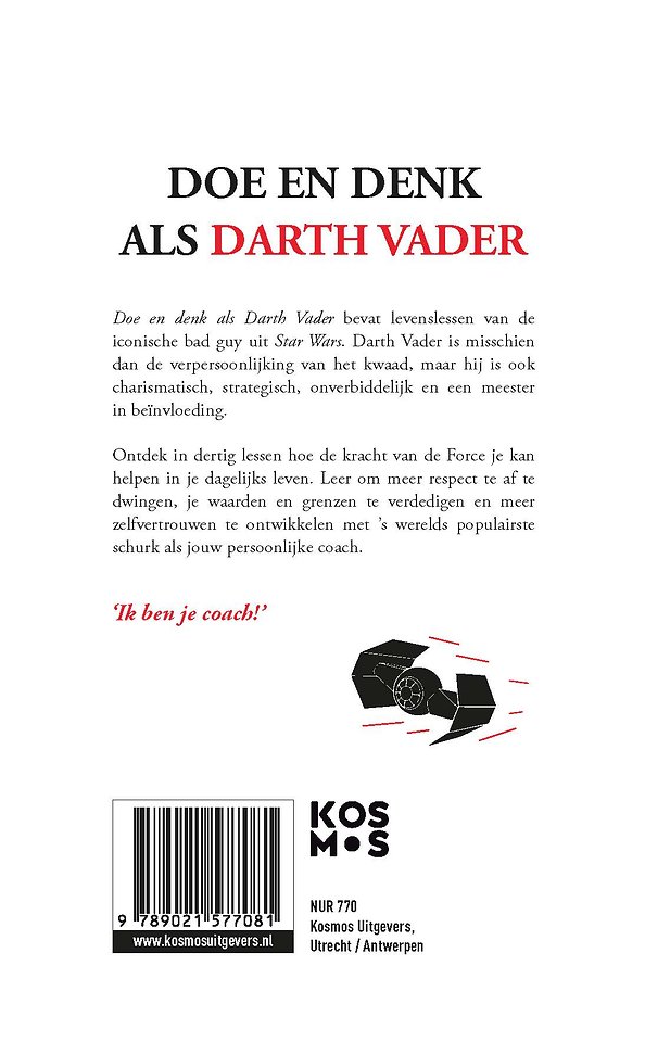 Doe en denk als Darth Vader staat vol levenslessen van de iconische bad guy uit Star Wars. Darth Vader wordt dan wel gezien als de meester van het kwaad, hij is ook charismatisch, strategisch, onverbiddelijk en een meester in beïnvloeding. Ontdek in dertig lessen hoe de kracht van de Force je kan helpen in je dagelijks leven. Leer om meer respect te krijgen, je waarden en grenzen te verdedigen en meer zelfvertrouwen te ontwikkelen met ’s werelds populairste schurk als jouw persoonlijke coach.
