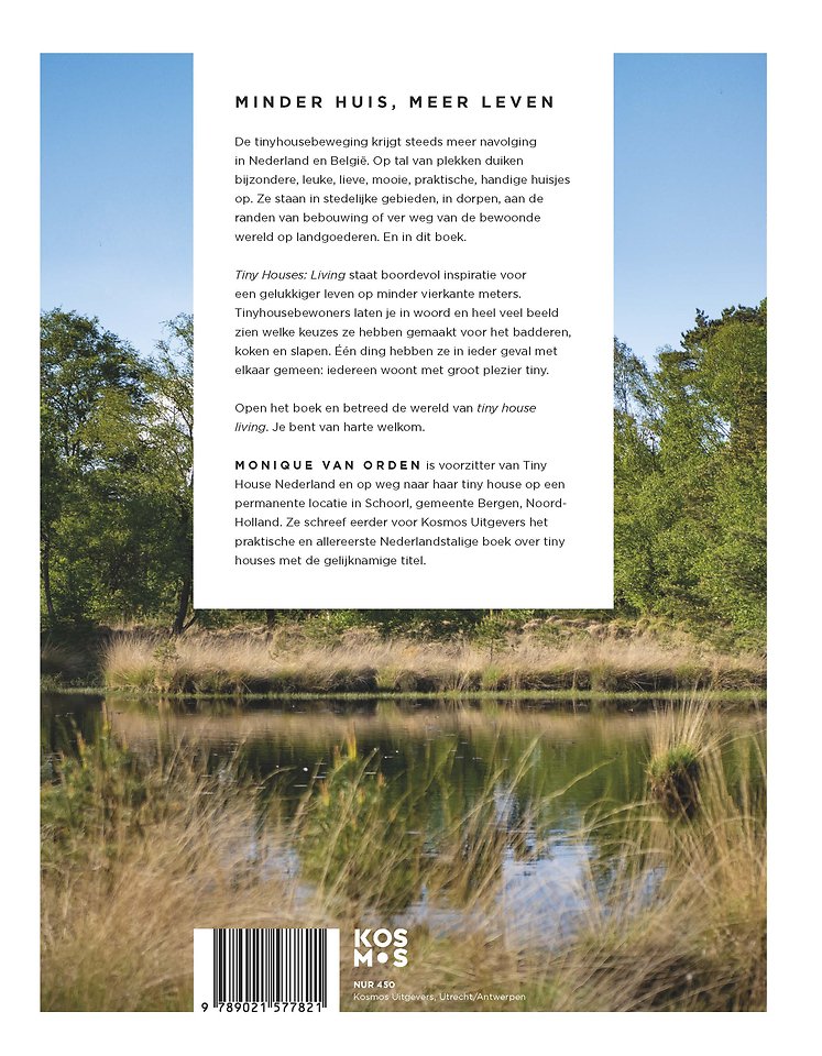 Tiny Houses: Living staat boordevol inspiratie voor een gelukkiger leven op minder vierkante meters. Na een voorzichtig begin krijgt de tiny housebeweging steeds meer navolging in Nederland én België. Vele bouwers van kleine duurzame huizen vertellen enthousiast over hun ervaringen met de bouw en hun nieuwe leven in en rond hun tiny house. De kleine huizen zijn duurzaam gebouwd en vaak volledig zelfvoorzienend. Tiny houses vind je op de meest mooie plekken in de natuur, maar er zijn inmiddels ook enkele kleine wijken. Laat je inspireren door dit prachtige boek, geschreven door Monique van Orden, voorzitter van stichting Tiny House Nederland.